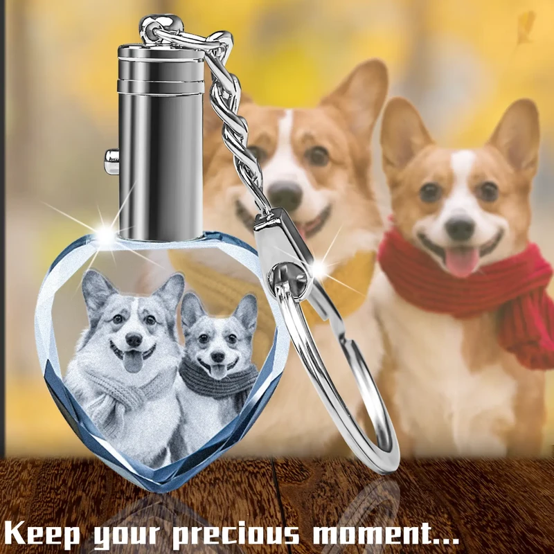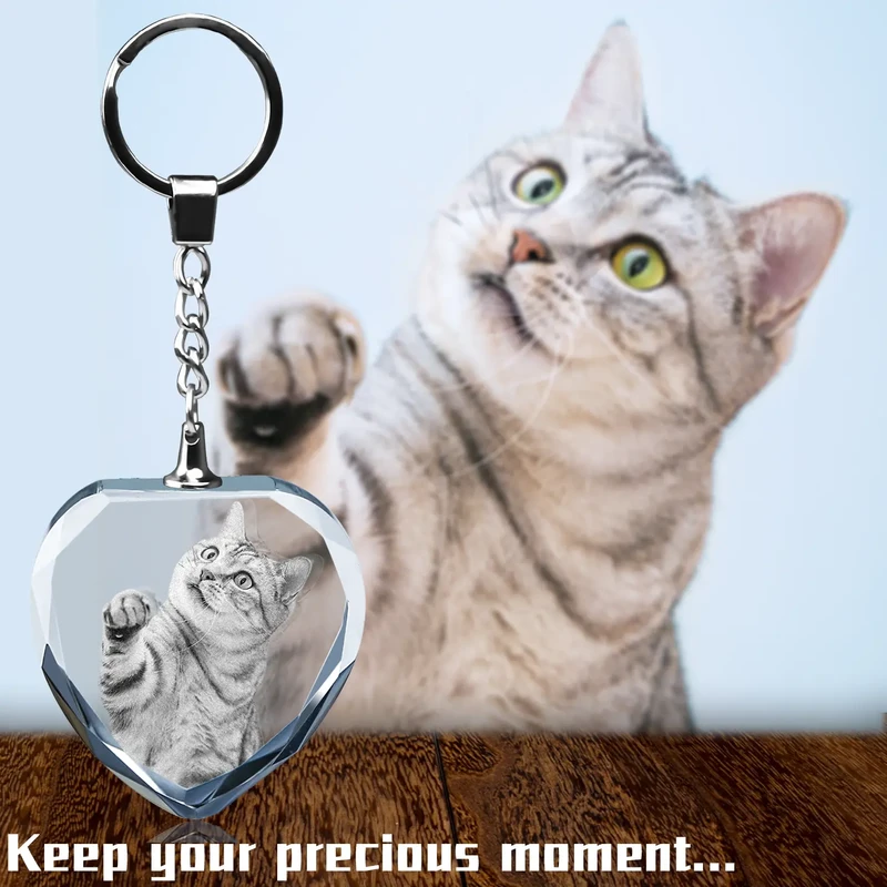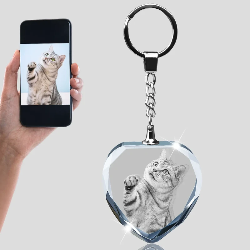 Personalized Crystal KeyChain 2D/3D Crystal KeyChain Laser Etched Photo In Heart Crystal Memory Gifts For Mom Dad Soulmate