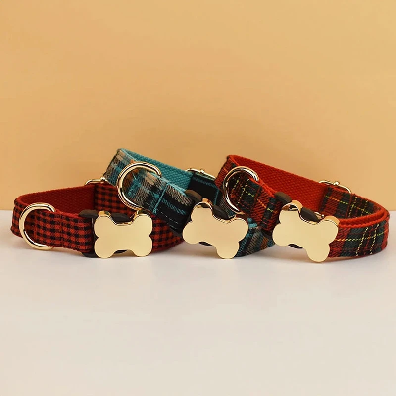 Personalized Pet Collar with Engraved Dog Bone Name Tag – Grid Series 2 – Gift for Dogs & Cats – Unique Personalized Pet Gift for Any Occasion
