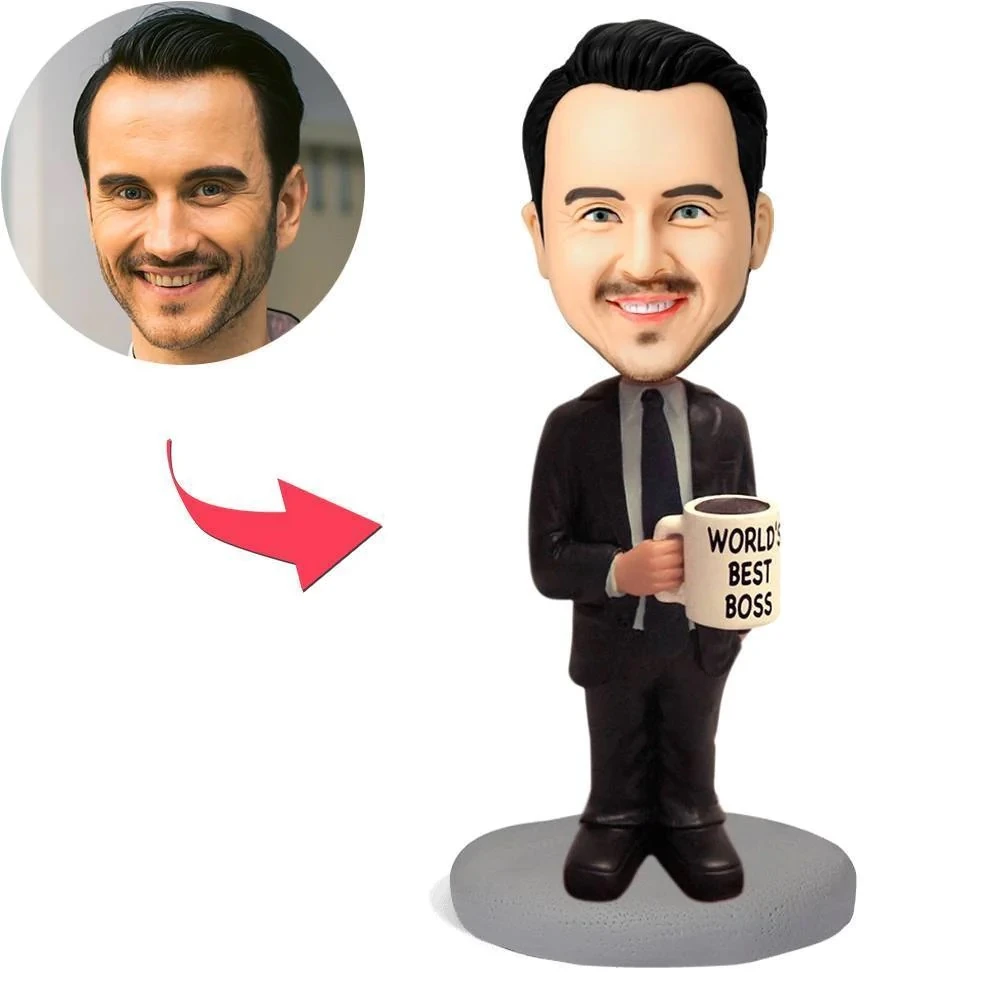 WORLD'S BEST BOSS Fully Customizable Single Bobblehead Polymer Clay Unique Gift for Boss etc.