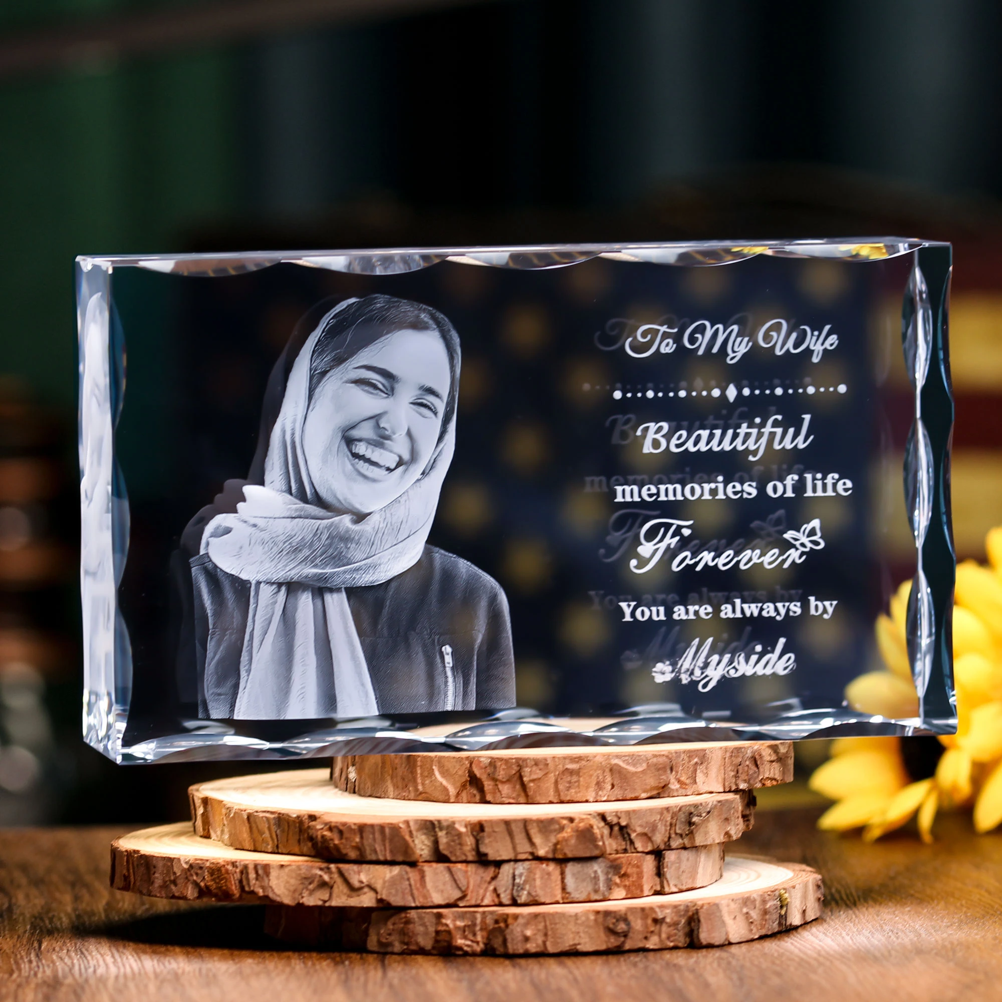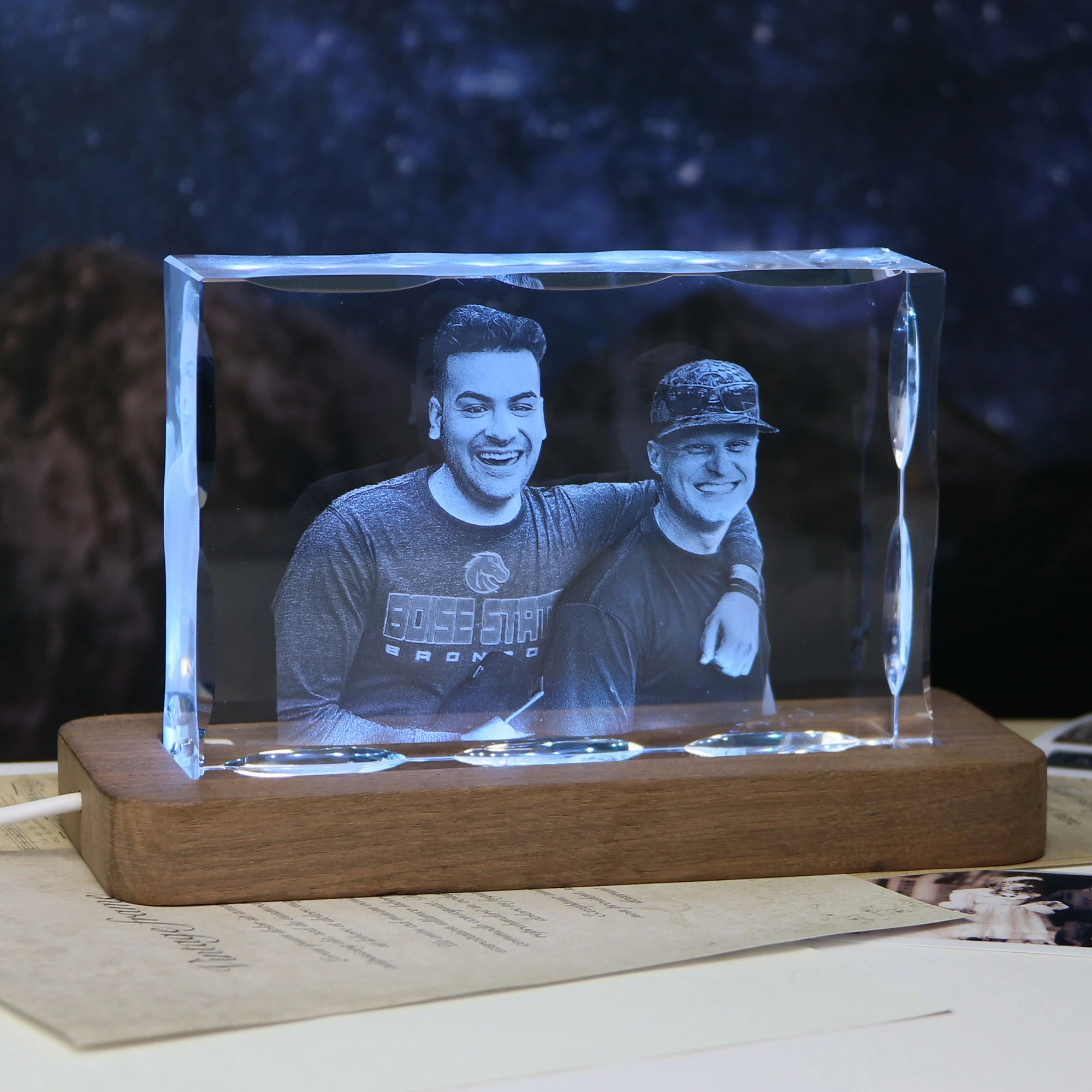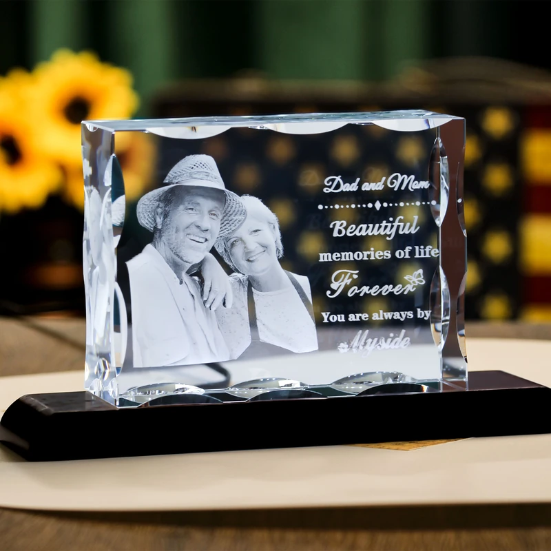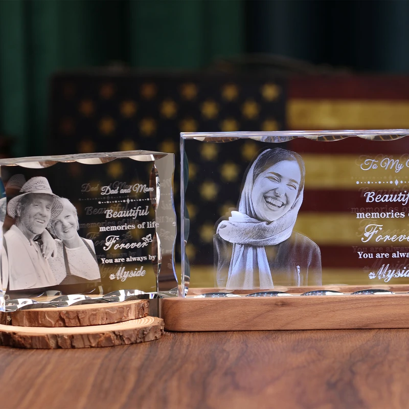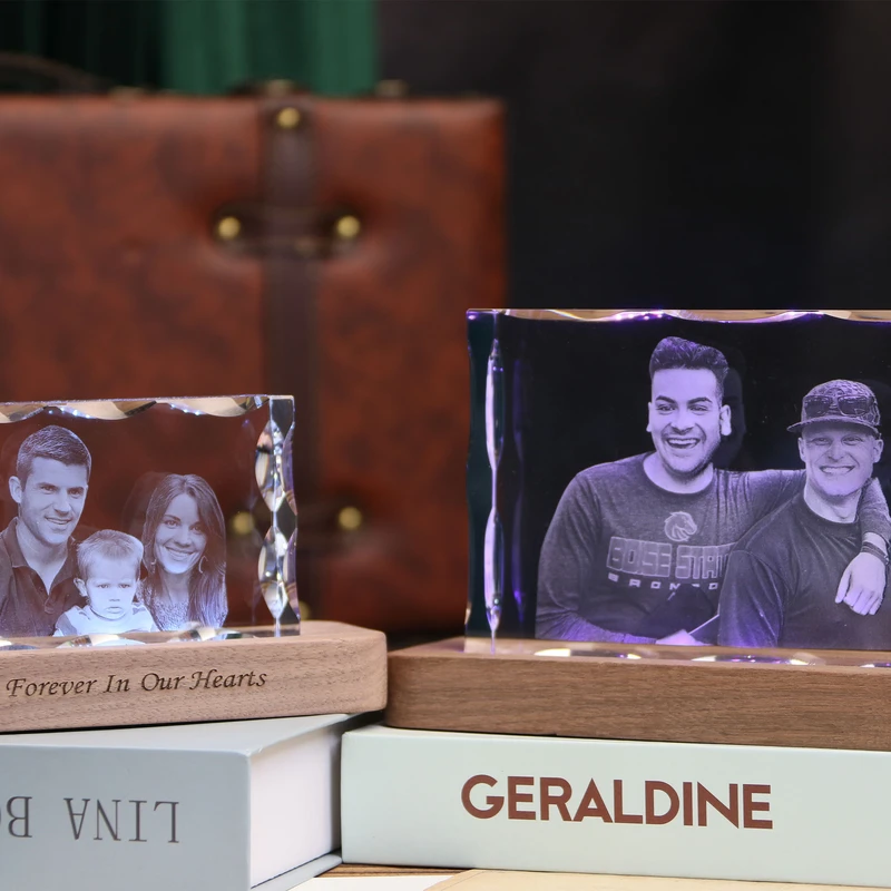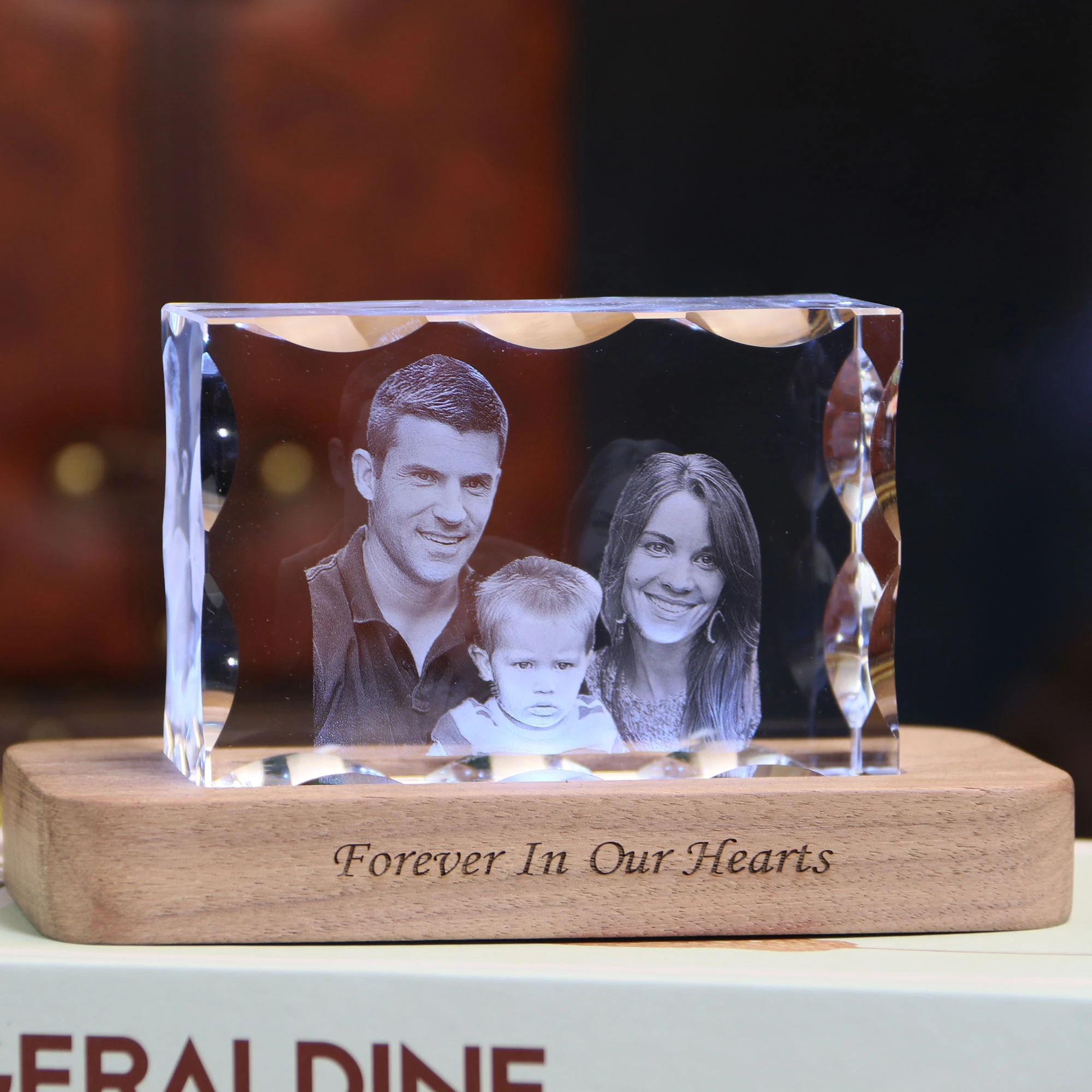 Personalized 3D Laser Etched Crystal Gift with Patterned Base – Custom Photo Keepsake