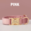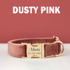 Personalized Velvet Dog Collar & Leash Set with Bow – Custom Pet Collar with Name – Engraved Nameplate & Metal Buckle – Adjustable Puppy Collar